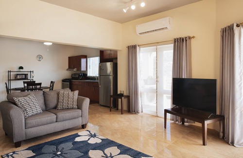 Guest suite is attached to a private home that sits on top of a hill with sea views. Private entrance with queen size bed, a/c, kitchen, security alarm system, washer and dryer, wrap around balcony for outdoor dining and parking. You can see the seaplane land and take off from the Christiansted Harbor. Close to Christiansted town with fine dining, grocery store, the beach, and social activities.