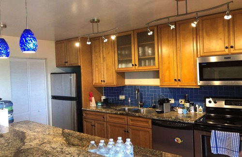 In your unit, you will find a fully equipped kitchen with all major and small appliances including a blender for your favorite frozen drinks !
