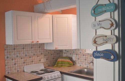 Imagine sleeping about 30 feet from the Caribbean Sea, listening to the waves, in a super comfy King bed and watch the sunrise from bed, or draw the blackout curtains and sleep in. Mermaid musings possible, as the condo is decorated island style with a life size Mermaid hanging (by local artist Barbara Gelardi) on the wall above bed. Furniture is high quality wicker/rattan and wood/seagrass. Kitchen is fully equipped to prepare any meal. Bathroom is fully tiled and has Caribbean blue granite vanity top. High ceilings throughout and ceiling to floor windows give views from every room! Bedroom has a portable A/C for your comfort.