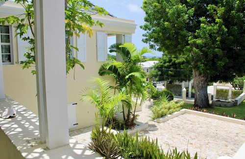The Moko Jumbie house, which once stood as the Danish Armory, boasts characteristics of early nineteenth-century residential buildings of Christiansted. This historic property is over 200 years old and has been restored with much love and care as a 4 unit Airbnb. The added interest is in the placement of the stepped site and the double-curved grand stairway leading to a masonry bay centered against the front gallery. The original yellow Danish bricks throughout the exterior have been preserved and allocated with great attention to detail, providing a truly unique experience. The floors are original oldpine, restored thanks to many months of work preserving their impressive longevity. "The Guardians" a bronze artwork by sculptor Ward Tomlinson Elicker, is permanently located just steps from your front door.