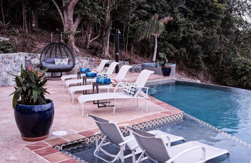 Pool and patios: Renovated in 2019, the villa is notable for its expansive infinity-edge pool, terrace and large hot tub. The 2,000 square feet meandering terrace on the main level overlooks the Caribbean Sea and Tortola. Well manicured lounging areas take full advantage of the views and are a great spot for supervised children to play.